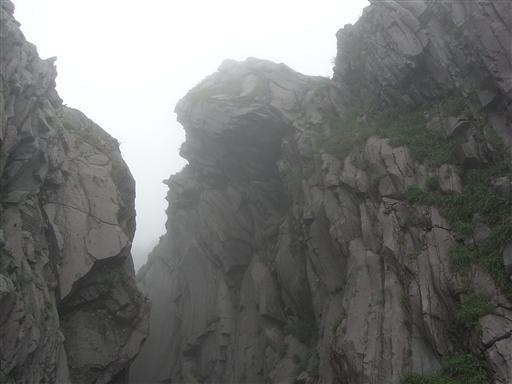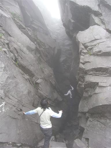 岩の溝の中を通り抜けて山頂をめざす。