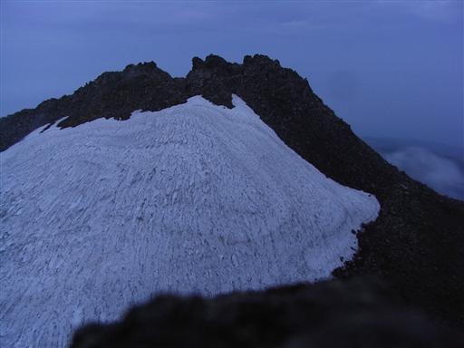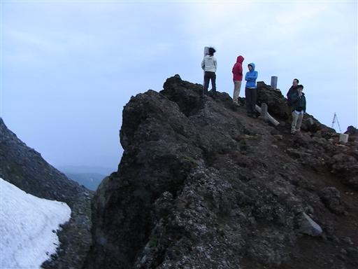 東の方が明るくなってきたが、雲があるため御来光は拝めず。