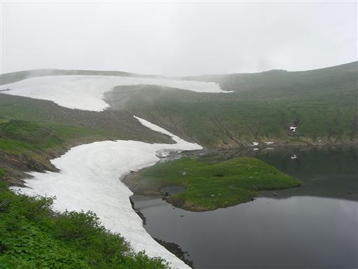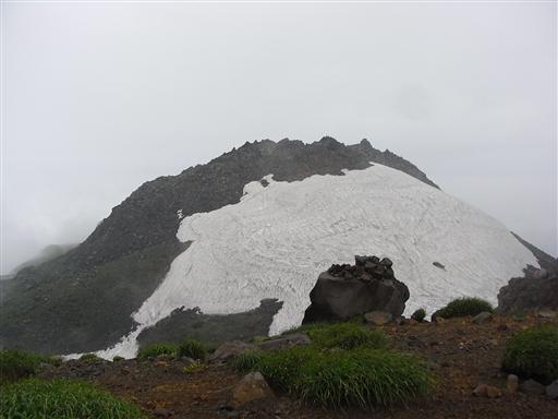 新山にはまだかなり多くの残雪が残っている。