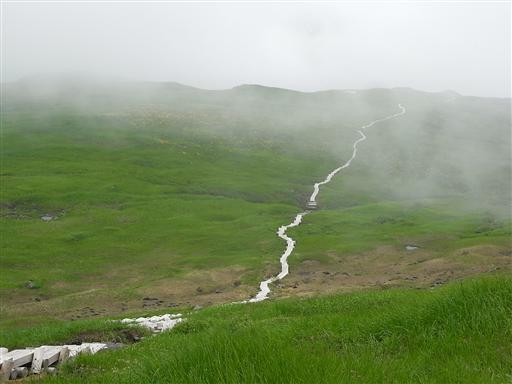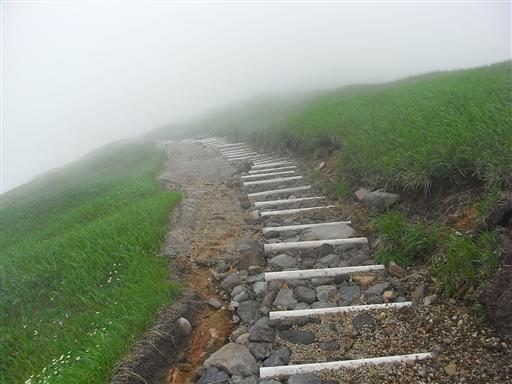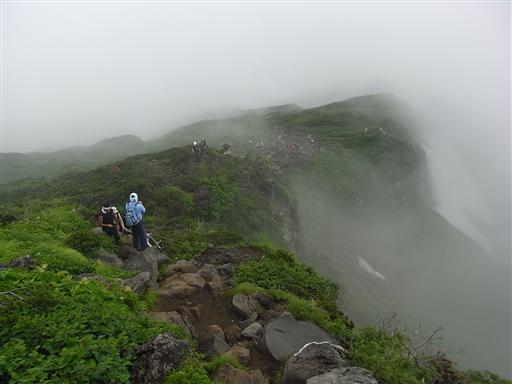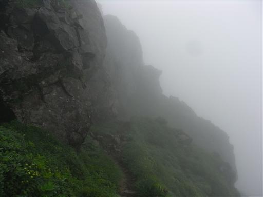 すでに登山道は雲に覆われ始めている。