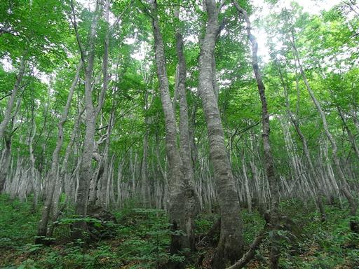 鳥海山麓を覆う森。ここまで同じ種類の木が続いていると少々不気味。