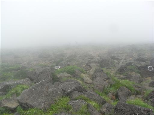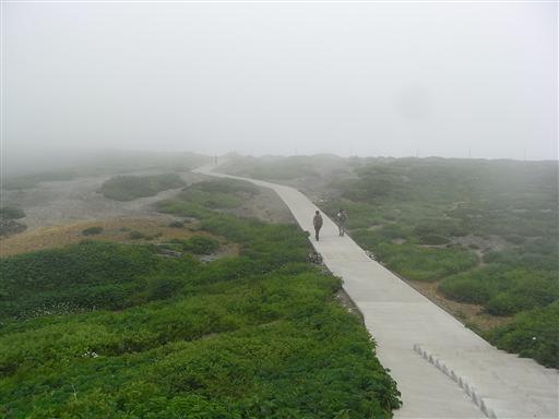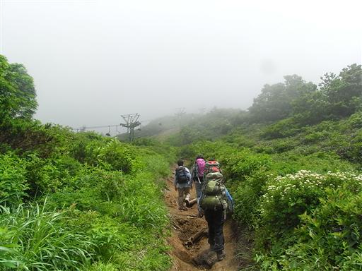 展望がいいはずの稜線は完全に雲に覆われている。