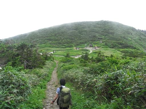 リフトに乗る観光客に見下ろされながら登る、なんとも居心地の悪い登山道。