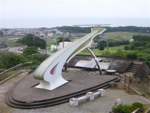 眼下に日比友愛の碑が見える。巨大なモニュメントだ。