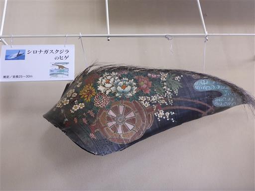 シロナガスクジラのヒゲに絵が描かれている。ものすごく大きなヒゲだ。
