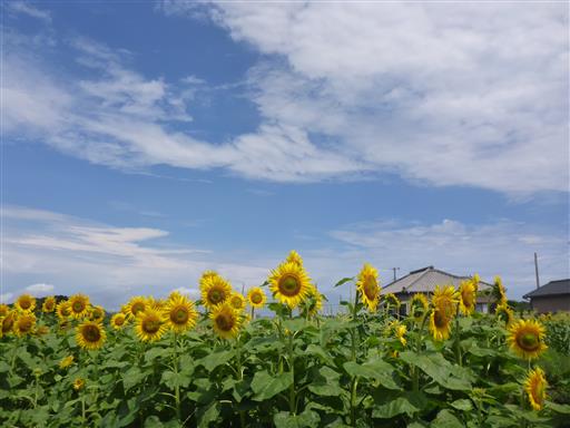ひまわり。青空が出てきて、ひまわりも嬉しそうだ。