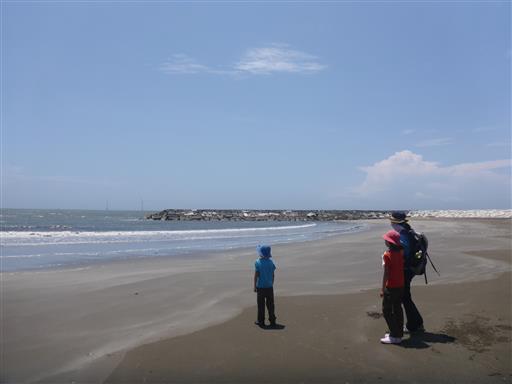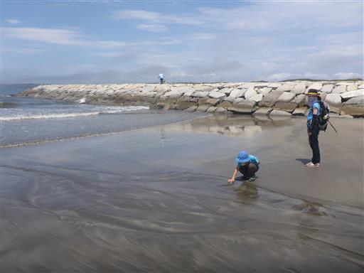 帰りは歩道ではなく砂浜を歩く。こちらの方が足にやさしい。