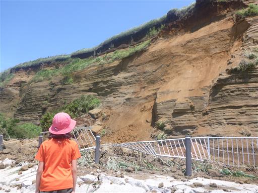 崖崩れが発生している。垂直に近い崖なので、こういうこともあるだろう。