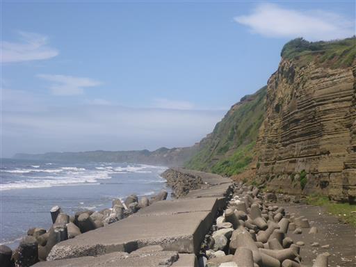 テトラポットに守られていることで、この岩壁がこれ以上削られることは無くなってしまった。