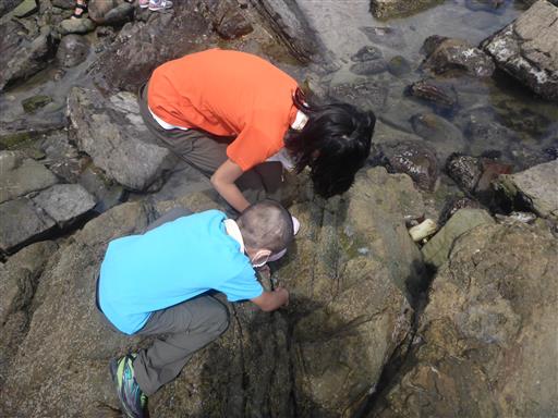 灯台見学を終えたら、磯に下りて遊ぶことにする。