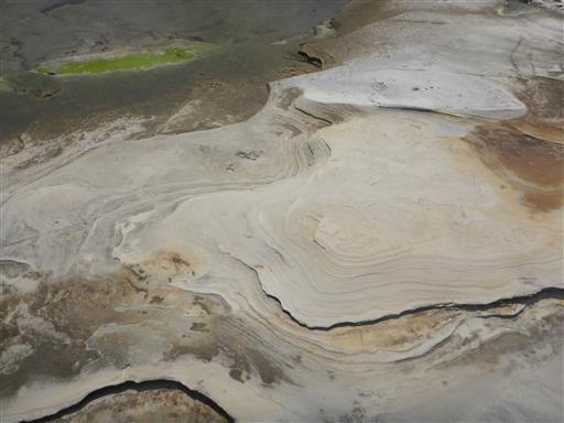 川底は美しい模様を描いている。砂はさらさらで触ると気持ちよい。