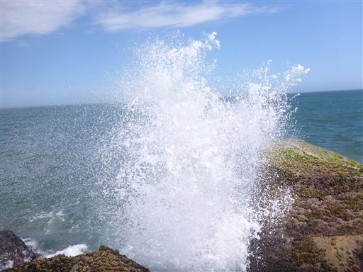 岩に波が打ち付けて、激しく水しぶきが上がる。