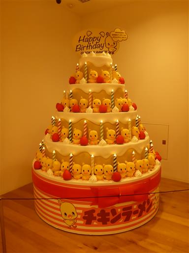 こちらはチキンラーメンの誕生ケーキ。もうすぐ60歳だそうだ。