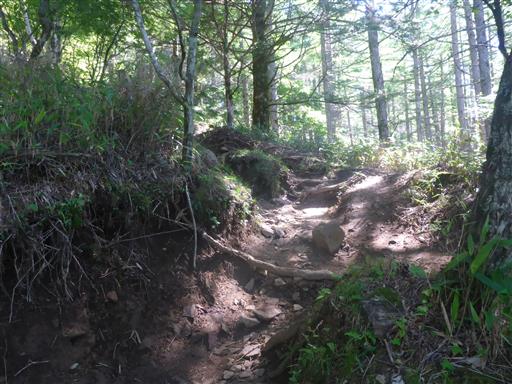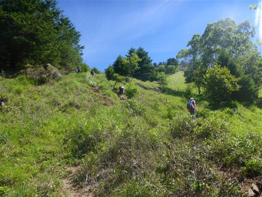 しばらく登ると樹木が無くなってくる。直射日光に晒されると、とにかく暑い。