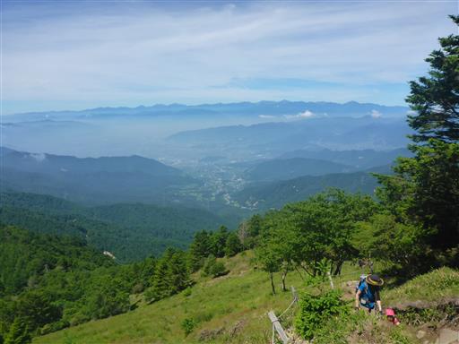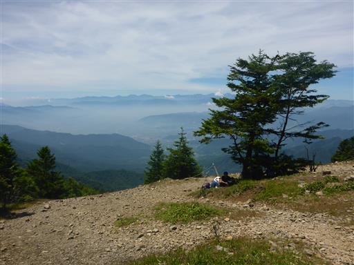 視界は大きく広がる。遠くに南アルプスの山々が並んでいる。