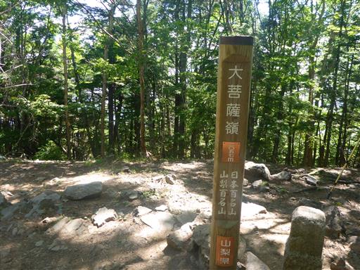 稜線に到達してから樹林帯の中を少し歩くと大菩薩嶺の山頂に到着する。
