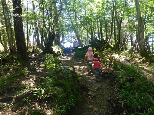 息子は「歩く」と言いだし、途中から歩いて登る。