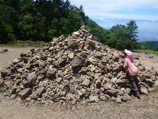 側には巨大なケルンが作られている。子供達が登ろうとしていたが危ないので阻止する。