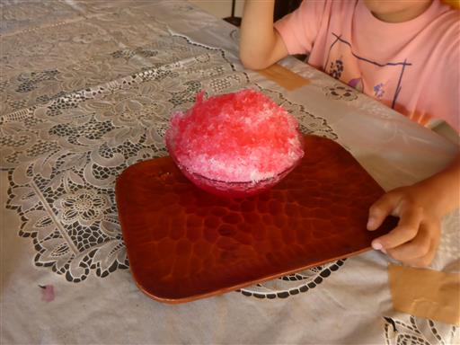 かき氷を食べて一服する。