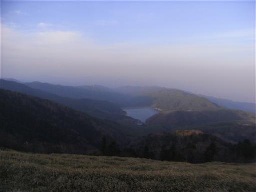 眼下には大菩薩湖が見える。その向こう側に見えるはずの富士山は残念ながら見えない。