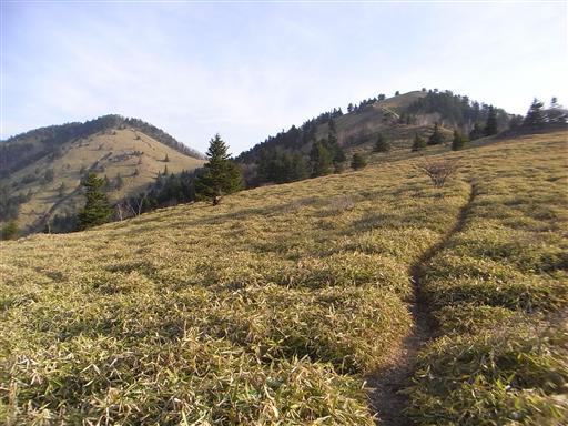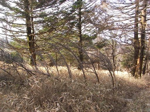 笹原と針葉樹林の織りなす風景は、南ア深南部とよく似ている。