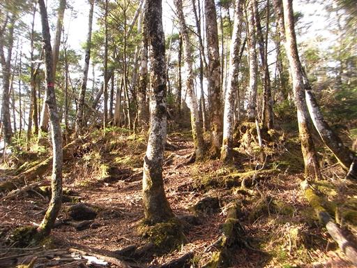 小金沢山の登りに入ると、再び針葉樹林に覆われる。
