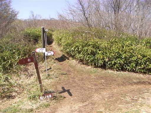 地味な熊沢山を過ぎると再び笹原が現れ、石丸峠に到着する。