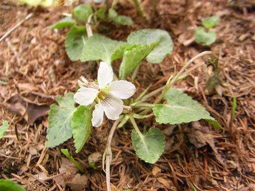 白いスミレを発見。スミレ属はそれだけで本が一冊できるほどの種類があるので、