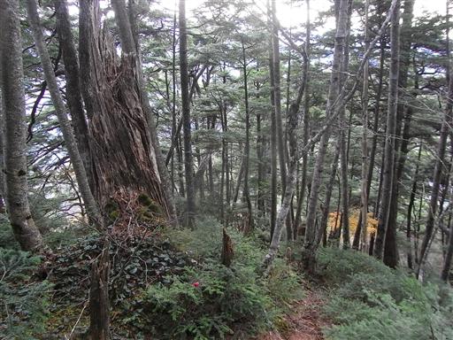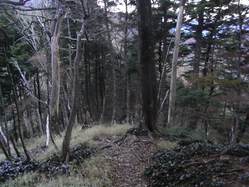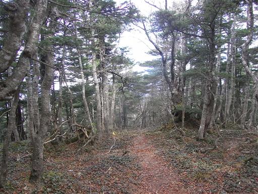 深南部の山らしい、黒木に覆われた針葉樹林帯の中を歩いていく。