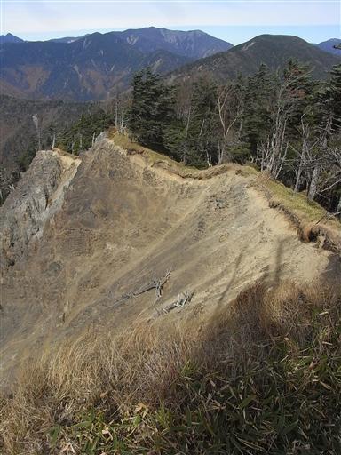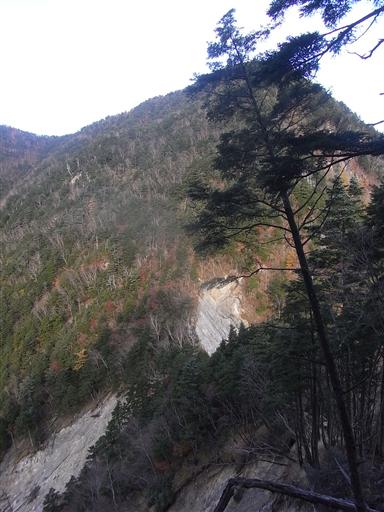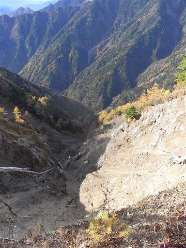この山域は侵食が進み急峻な崖が多いので、あちこちで崩落が起こっている。