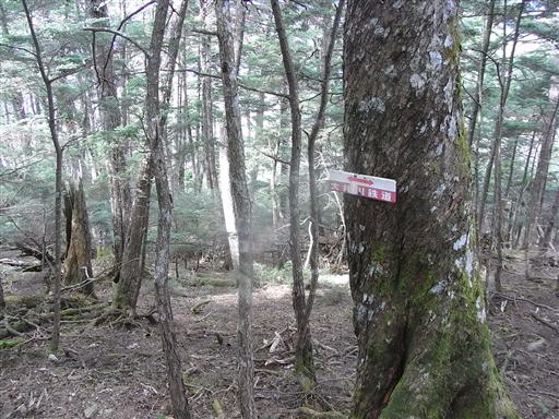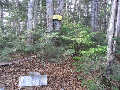 一等三角点が埋まる山頂は樹木に覆われ展望は全くない。いかにも深南部の山らしい。