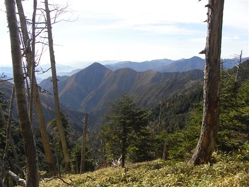 左に見えるのは青薙山、その右は笊ヶ岳の辺りだろうか。
