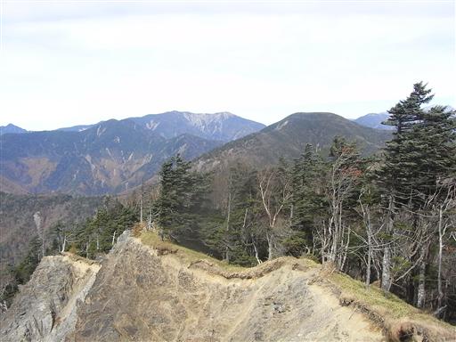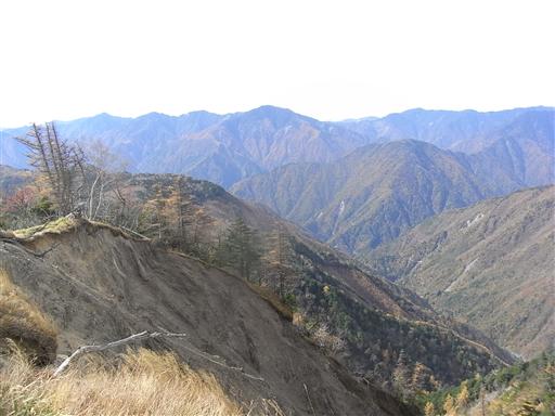東側は大きく崩壊していて、そこからは寸又川右岸の山々が見渡せる。