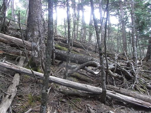 辺りは倒木だらけ。まさに原始の森だ。