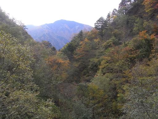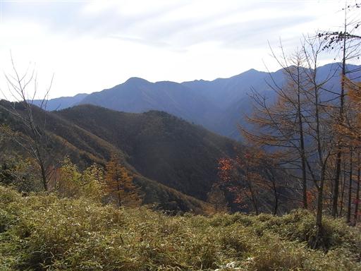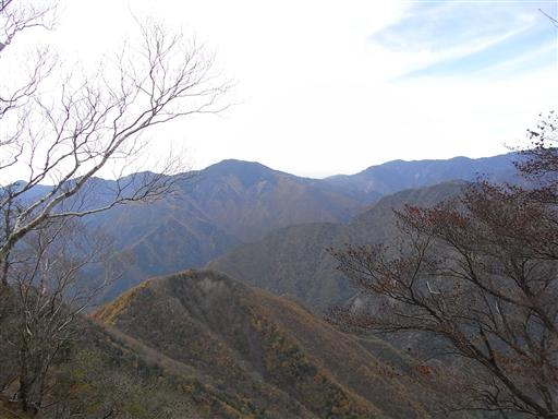 歩いてきた大無間山の方向はきれいに色付いている。