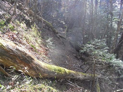 道は分かりにくく、倒木が多くて歩きにくい。