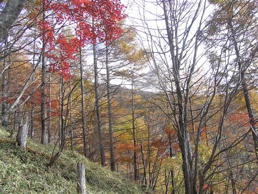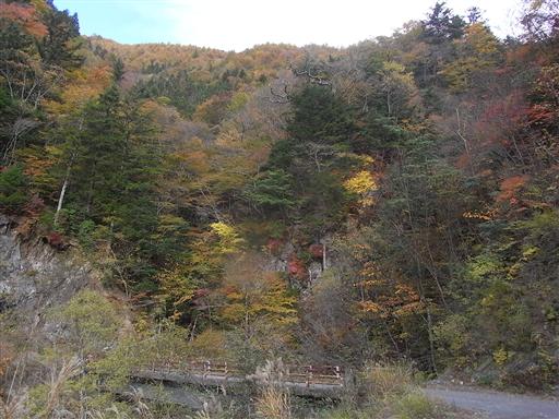 標高を下げていくと、上のほうでは見られなかった美しい紅葉が見られる。