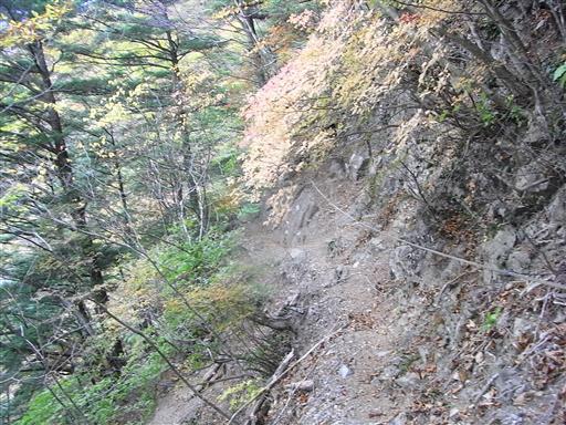急峻な崖につけられたトラバース道。