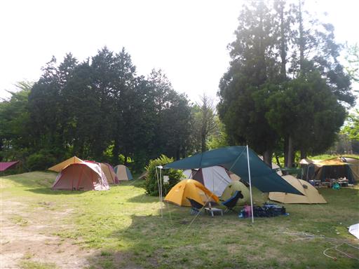 大山池野営場に到着。そこそこ埋まっているが、明日は平日のため、空きスペースはある。