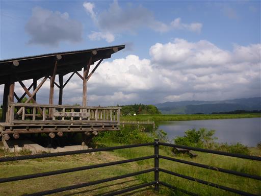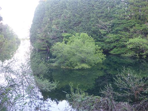 目の前は大山池。正式名称は狼谷溜池で、灌漑用に造られたものだ。