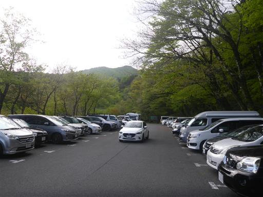本日は伯耆大山を登る予定。駐車場は多くの車で混雑している。標高780m。