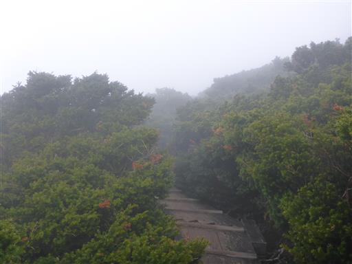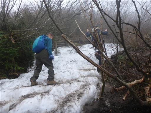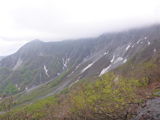 登りの時は視界が無かったが、今は雲が上がって大山の斜面がだいぶ見えるようになっている。