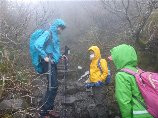 家族登山ではほぼ初めてとなるカッパを着ることになる。