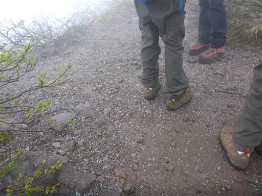 降ってくるのはすぐに雨から大粒のあられに変わる。当たるとちょっと痛い。