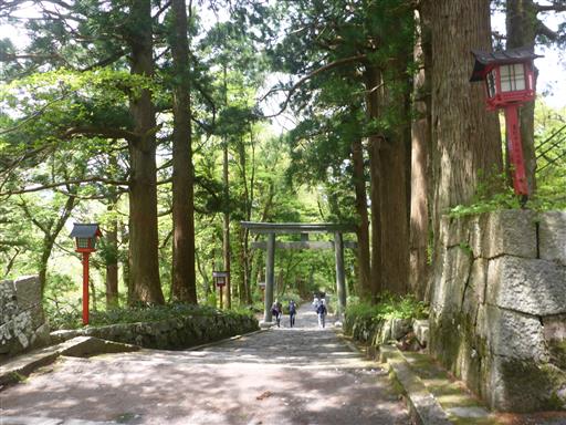 奥宮神門。この辺りはもう観光地で、観光客がチラホラ見られる。