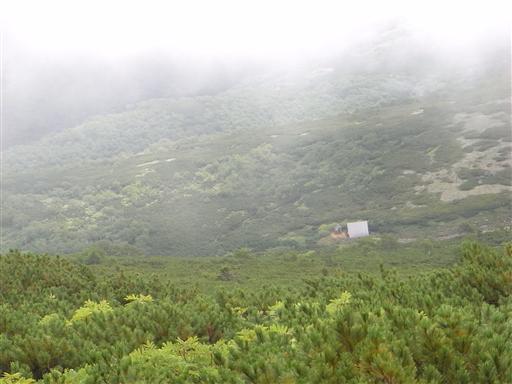 5:53 カッパを着て白雲岳避難小屋を出発する。