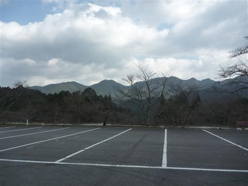 山の中にある神社のため、駐車場からは周りの山々を望むことができる。