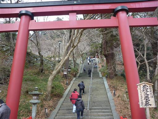 正面入口の鳥居に到着。ここから長い階段が続いている。