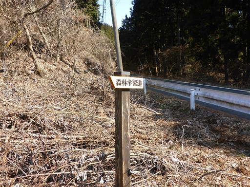車道と分かれた登山道に「森林学習道」と書かれた標識が立っている。