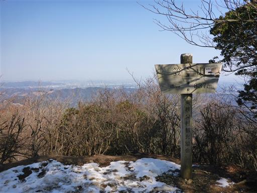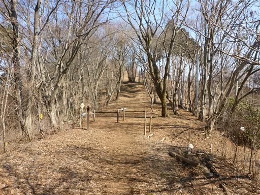 山頂標識はあるが、その先の笠山神社方面に登り坂が続いている。